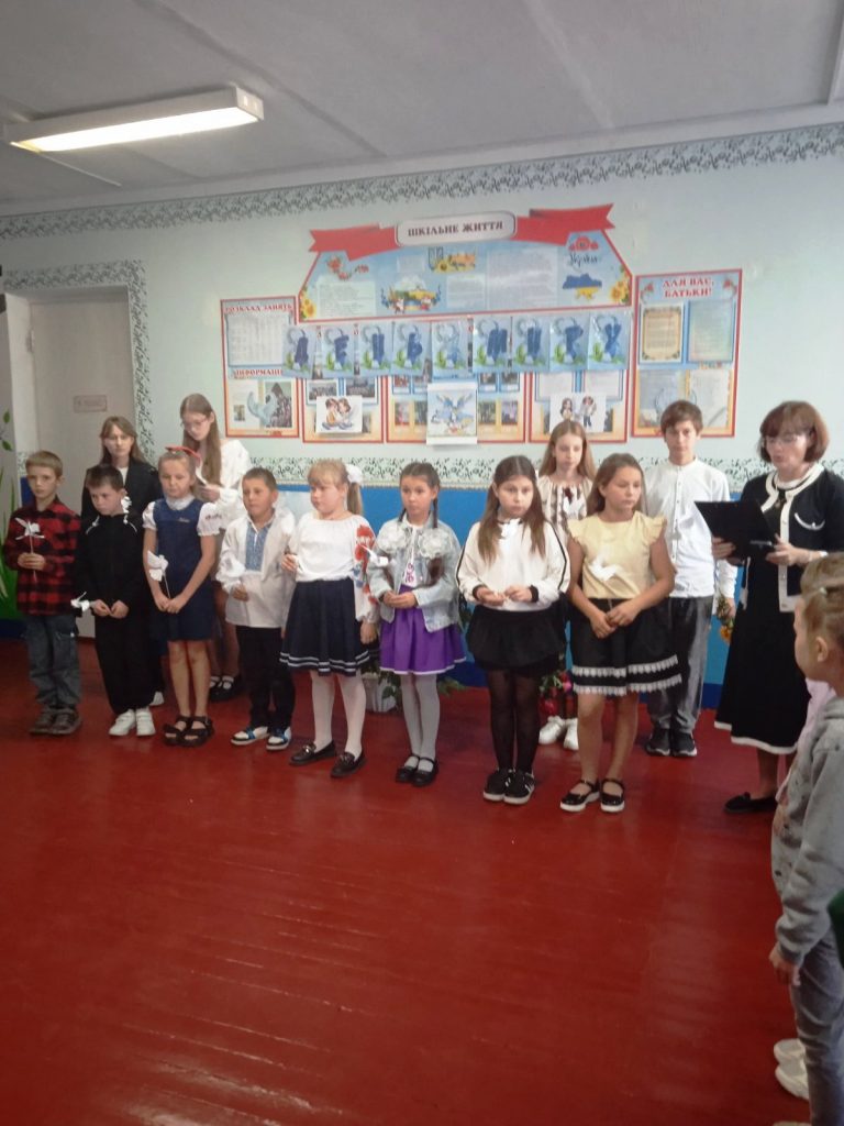 Учні під час заходу говорили про мир, вшанували пам’ять загиблих односельчан хвилиною мовчання та покладанням квітів до Меморіалу пам’яті.